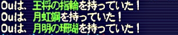知り合い5人で王将固定チームを結成し、先月あたりからゆっくりペースで通っています。いまのところ5戦5勝。装備枠ドロップは、首2・指1・耳1・香車の札。札がドロップした時は、2度見どころか3度見してしまいました、ちくしょうw