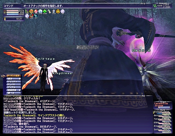 その後もゲッショー先生と通っているテールモスですが、慣れてきたのと装備が少しづつ揃ってきたせいか討伐タイムが縮まってきました。大体6分台で、ゲッショー先生が途中で倒れると7分台、調子がいいと5分台、そして稀に4分台。でも、これ、上忍の方々は自分がタゲ持ちつつ4分台出すんでしょう?無理すぎィ!僕はこのまま雑草忍として生きていこうと思います。