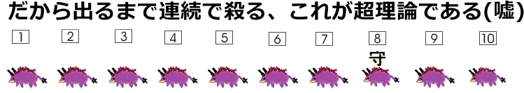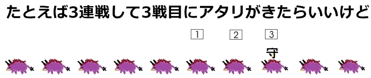 守りの指輪のドロップ率は5%なので、算数が苦手な僕が単純に考えると20匹やったら1個ドロップする計算です。2連戦とか3連戦とかチマチマ倒してるから、次のその2連戦とか3連戦までの間にベヒを倒した他の人のところに守りが落ちて、僕にアタリが来ないんだと。つまり、出るまでずーーーーーーっと連戦しよう、たぶん20連戦したら1個ポロリすんだろっていう思考です。出るまでやるんだから、流れ、とか関係ねーし!エウレカ!!