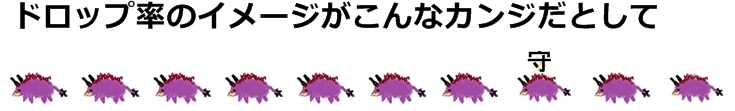 まあ、ドロップ率5%のアイテムに対してアタリを引いたのが1/80でだったってのは運が悪いんだと思います。野良で出会ったり、一緒に遊んだ皆さんは「4匹目だった」とか「10匹目だった」とか言ってて、マジかよ!!そんな簡単に出ねーよ!!とか思いながら「へー^^そうなんですかー^^」って流してました。