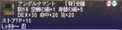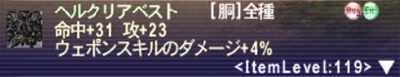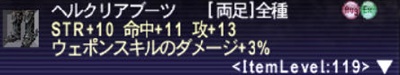 ヘルクリ足は通常攻撃時と同じものです。マルチアタック寄りにしていますが、知り合いのガチ系な人はWSDアップのほうがいいとか言うんですよねー。まあ、これは、支援や他装備含めた環境によるのかもしれません。脚はサムヌーと迷ったんですがDEX落としすぎたらダメかなーと。マルチ盛るならサムヌーでも良くね?って思うんですけどどうなんでしょうね。テロスはそのうちマーケ+1にしたい。